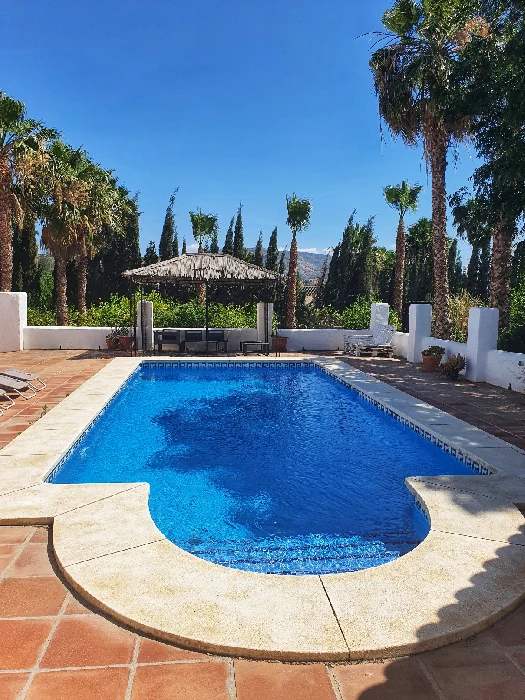 Het 2e huis ligt in Pizarra, of beter tussen Pizarra en Coín. Erg centraal en op korte afstand van bijna alles: vliegveld, strand, Málaga noem maar op! Eenmaal aangekomen bij het huis moeten wij beiden de verbazing uit de ogen wrijven, rondom uitzichten waar je U tegen zegt. Een tuin waar je mond van open valt: wandelpaden, cactussen, bloemen, bomen, palmen, alles wat je in een mediterraanse tuin verwacht zat erin! En toen het huis...werkelijk een plaatje veel benutbare kamers met eigen voorzieningen. Wel nog de nodige verbeteringen nodig om het voor ons geschikt te maken, maar het kan. Achter het huis een hele grote patio met aansluitend op een hoger niveau het zwembad met veel terrasruimte rondom voor ligbedden en zitjes.